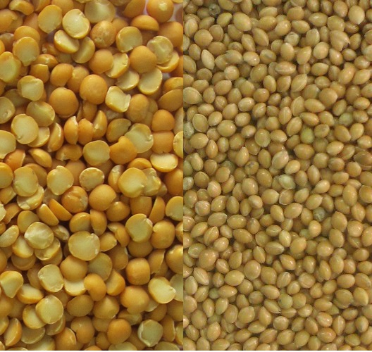 Желтый, зеленый горох.